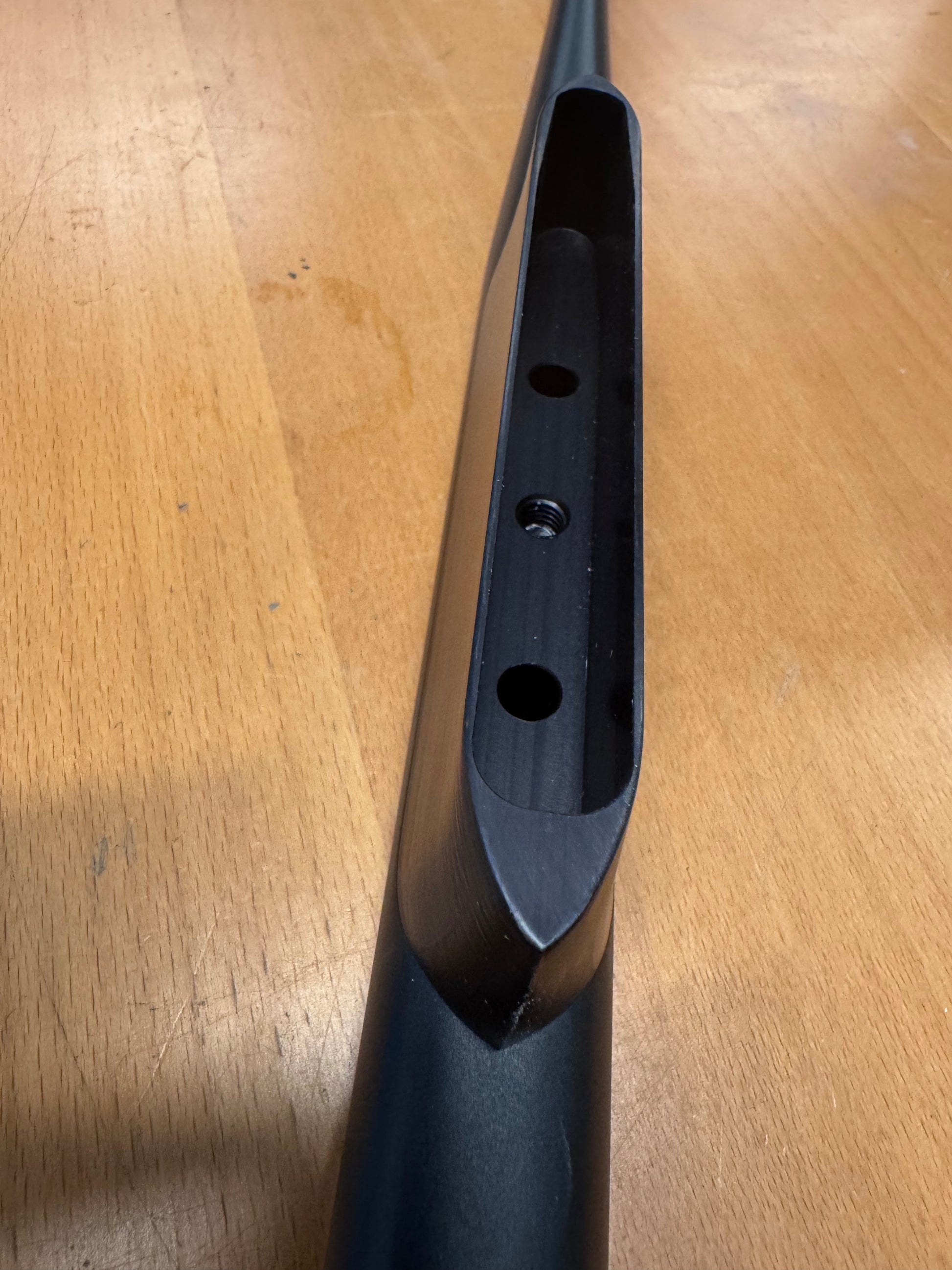 This adapter facilitates seamless integration with the Axis Carbon Fiber mast and the all new KT Fuselage. Brilliant engineering combined with precision CNC machining, this component is meticulously shaped from industry-standard 6061 aluminum and anodized in black for maximum corrosion resistance and flawless craftsmanship. It arrives complete with all the essential fasteners for quick assembly. This adapter will also work with the Axis Aluminum mast and stock Axis DooDad.